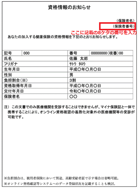 - 資格情報のお知らせ(各共済組合から紙媒体で送付される通知書)