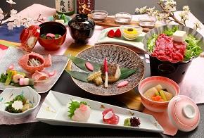 (例:春『筍料理』、夏『鱧料理』、秋『松茸会席』、冬『かに料理』)