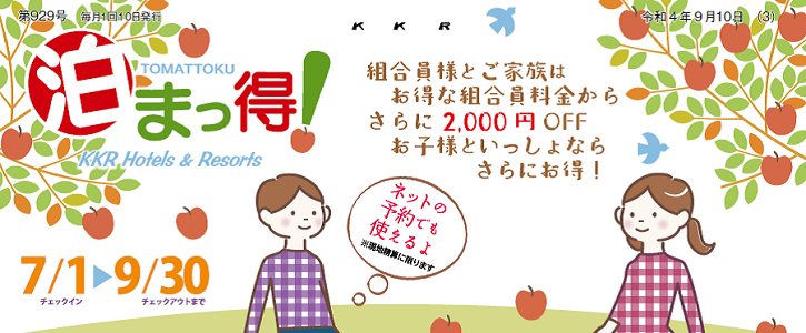 「夏のKKR宿泊割引券2,000円」と「お子様同行割引券1,000円」が付いています!!