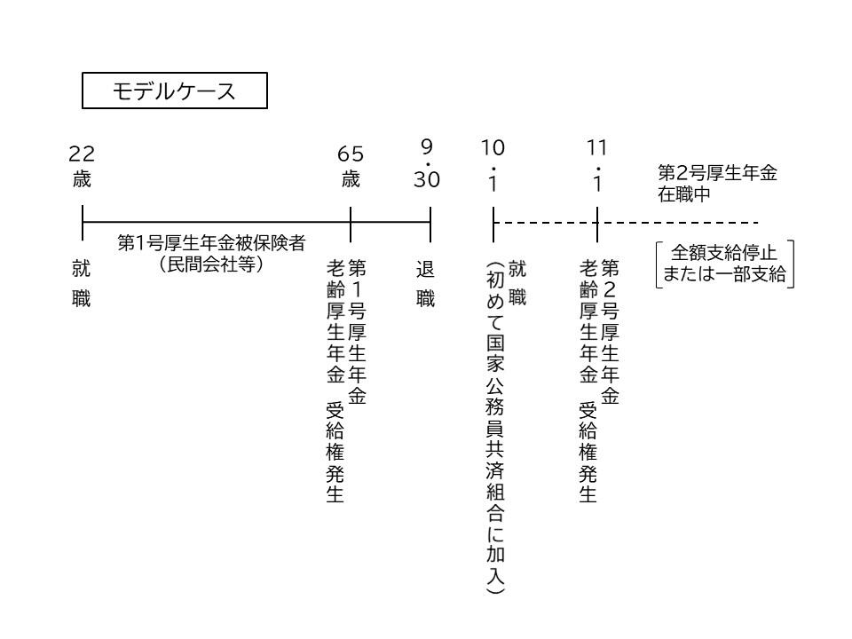 第1号厚生年金(日本年金機構)または第4号厚生年金(私学事業団)の老齢厚生年金の受給権を有している方が、65歳以降に初めて公務員として勤務し、国家公務員共済組合の長期組合員となった場合、一か月経過後、新たに第2号厚生年金の老齢厚生年金の受給権が発生します。
