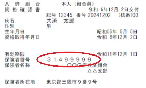 共済組合員は31から、自衛官は07から始まる8ケタの番号です。